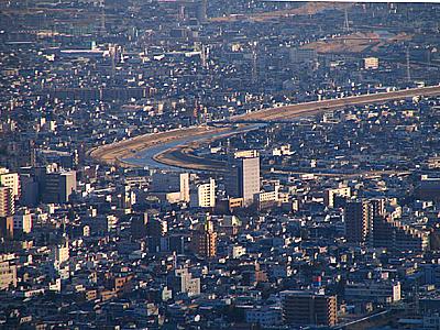 | 午後4時22分 写真の川は荒川。 正面やや上に写っている橋は千秋橋だ。 |