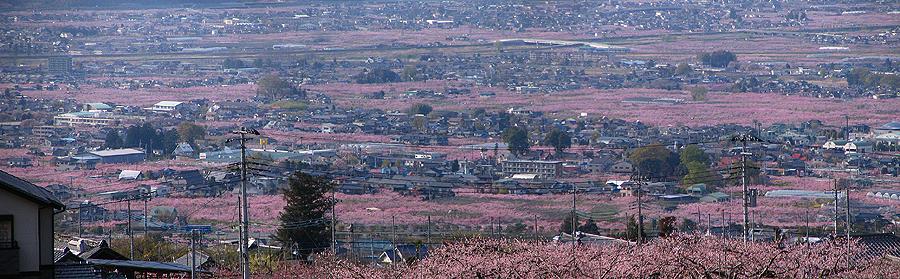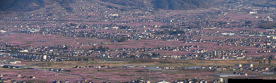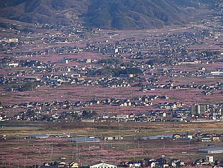 | 登山口からはそのまま車道を上り、最後は春日居町の鎮目へと抜けて戻ることにした(写真は途中の展望台から撮影)。 開花状況としては既に満開。 桃の花が見られるのもそう長くはなさそうだ。 再び出かけてみたいところだが、この先1週間パッとしない天候が続きそうなのが残念だ。