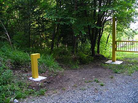 | 午後17時10分 しかしこのゲートは役に立つのだろうか。 支柱の横を廻り込むと4輪でも楽に抜けられるほどの隙間があり、実際に路面にはタイヤの轍がくっきりと残っていた。 こういったお飾り程度のゲートは各地にあるが、もしかしてこれは工事関係者の善意なのだろうか(まさかね)。それとも単に建て方が中途半端なだけなのか。と、ここで詮索することはやめておく。 |