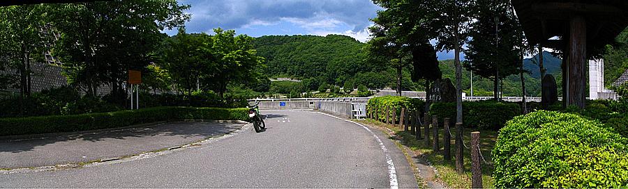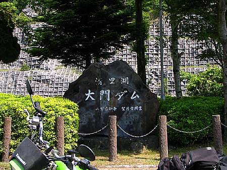 午後2時12分 大門ダム入り口。 道の駅でパンフレットを入手して出発。 大門ダム入り口までの距離は約1.6キロしか離れていないのでアッという間に到着だ。 |