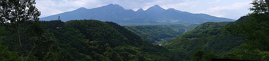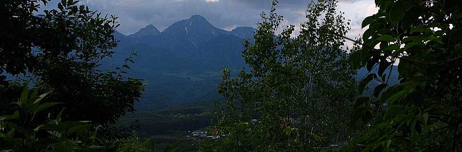 | 午後4時54分 山の裏側へ出ると目の前に八ヶ岳。 その手前側は大泉村のようだ。 |