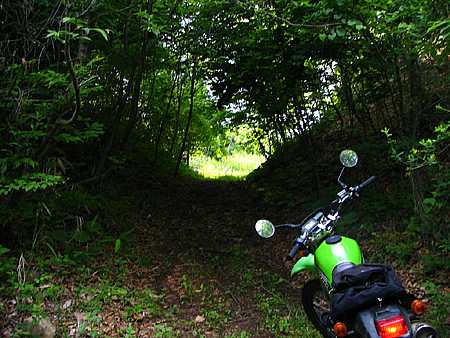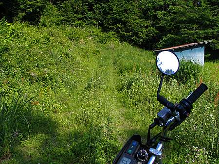 | 午後4時17分 やっと草道を脱して広い道へ。 景色はないが、道幅が2車線弱くらいあるので割と快適だ。 |