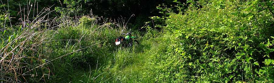 午後4時19分 と、思ったら再びの草道。 蜘蛛の巣があちこちにあり、顔に絡まってくるのが厄介だ。 |