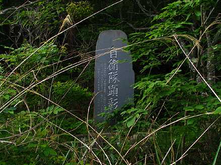 午後4時25分 自衛隊顕彰碑の建つ分岐点。 直進的に進むと大門ダムの直ぐ東側へと行き着くが、本線は右へと切り返していく。 |