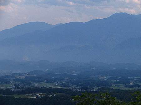 午後5時10分 見晴らし台の最上階まで登ると甲斐駒ヶ岳、鳳凰三山、富士山、八ヶ岳などの山々が連なり、その下には韮崎市、武川村、白州町などの町並みが広がっている。 当日は残念ながらやや陽が陰ってしまったが、晴れた日ならもっと素晴らしい眺望を見られることだろう。 |