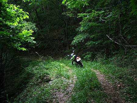 午後3時17分 枝道へ入って林道大和線へ。 大和線は約2.9キロの林道で、途中からは約1.3キロの支線が延びている。 どちらもピストンだが、その殆どが未舗装路のまま残されている。 |