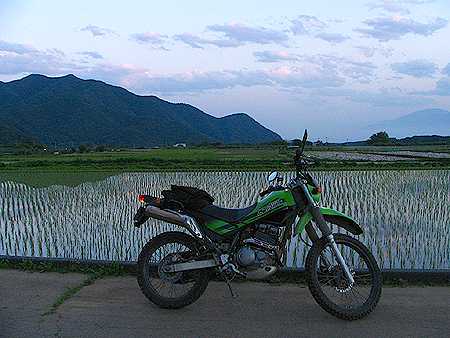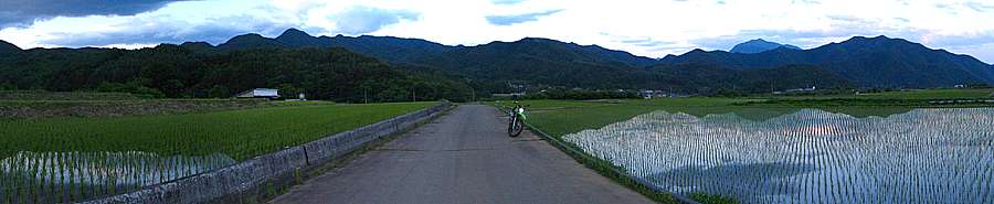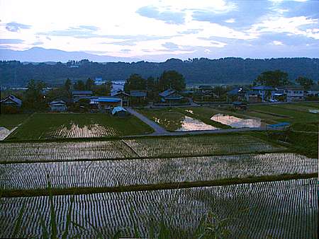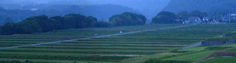 | 午後7時10分 小倉地区の水田地帯(手振れでボケボケ)。 |