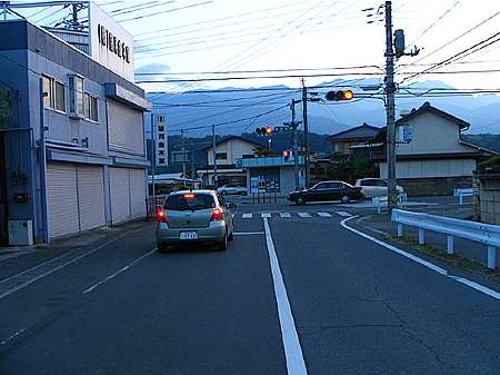 午後6時50分 国道141号の絵見堂交差点。 右折すると程なく道の駅「にらさき」だが、今回は左折して韮崎駅方面へ進むことにする。 |