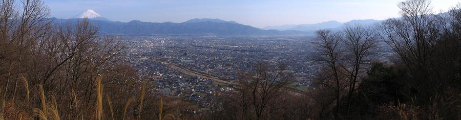 | 午後4時8分 しかし盆地の景色はなかなかのもの。 当日は空気が澄んでいたので遠くまで見通すことが出来ました。 ちなみに写真右の中央をうねっているのは中央自動車道。 奥は豊富町方面です。