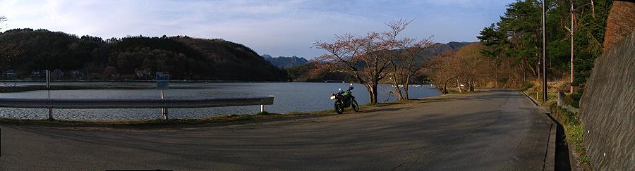 | 午後4時58分 最後はいつものように千代田湖へ。 時間が遅かったせいでしょうか。 釣り人の数も少なく、やや閑散とした湖畔になっていました。 さてさて当日のお花見は流石にまだ早かったようです。 予報ではこの先の天気は余り芳しくないようですが、お花見は年に1回のイベントでもあり、快晴の空を期待したいところです。