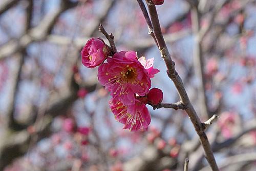 | 2011年2月7日 朝から気持ちの良い晴天となったので、久しぶりにデータ取りへ行ってみることにしました。 午後1時30分 敷島総合公園に到着。 木によってバラつきはあるものの、敷島総合公園の梅の花は2分から3分咲き状態。あと半月もすれば白やピンクの花が咲き誇り、辺り一面に梅の匂いが漂っていることでしょうね。