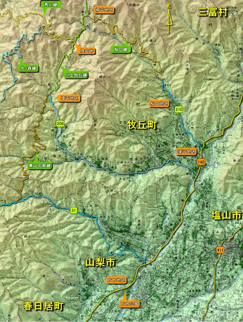 | 山梨の林道事典 M367 林道川上牧丘線 起点周辺マップ | ||