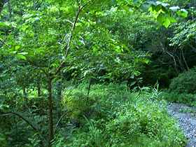 | 猫坂林道への入り口は御岳林道を黒平町に向けて6キロほど走っていくと左側にある。入り口から十数メートルだけ舗装されているが、その後は全てダートとなる。周囲は全て山と樹木に遮られるため眺望は全く望めない。 | ||