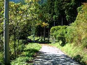 | 伊奈ヶ湖大久保平林道は県道108号線を伊奈ヶ湖方面に上っていくと左折する道があるので左へと進む。入り口には林道の看板が立っている。入った直後の道幅は約1.5車線弱。周囲が樹林帯に覆われているので眺望はない。全線に渡ってほとんど陽が射さないが、頭上が抜けているので閉塞感はない。 | ||