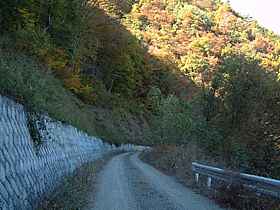 | 全線に渡って概ね谷側が開けているのだが樹木が遮るので眺望は余りきかない。しかし道幅が平均して1.5車線ほどあり路面も固い土なので走りやすい。短いが、それなりに楽しめる林道ではある。 | ||