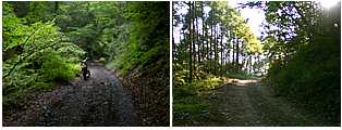 ●太良峠→水ヶ森林道→一ツ木水ヶ森林道→東山中部林道県道31号で太良峠まで上り水ヶ森林道へ入る。水ヶ森林道は前半と後半にそれぞれ3キロ強の未舗装路があり、その中間点で一ツ木水ヶ森林道が分岐している。一ツ木水ヶ森林道は東山中部林道と接続しており、東山中部林道を南進していくとやがて県道31号へと戻ることができる。一般的な4輪セダン型、2輪オンロード車でも走れると思うが段差の大きい部分もあるのでオフ車の方が快適。 ●前山大明神林道→大明神林道→観音峠大野山林道→小森川林道→県道23号→樫山林道前山大明神林道は長い未舗装路を有し途中には数多くのヒルクライムがある。前山大明神から大明神林道へ進むと観音峠大野山林道へと抜けることが可能で、観音峠大野山林道からは小森側林道へと下り、県道23号に抜けたら増富方面へ北進する。県道23号からは樫山林道へ上る道があり再び観音峠大野山林道へ戻ることができる。前山大明神林道は開放的な林道だが、小森川林道と樫山林道はやや閉塞的。両林道ともやや荒れている部分があるのでオンロード車では入らない方が無難。 ●日向日影林道→本谷釜瀬林道→みずがき林道→小川山林道→松平林道→横尾山林道県道23号で増富まで行き日向日影林道へ入る。日向日影林道は再び県道23号へ戻るので西進して本谷釜瀬林道(全線舗装)→みずがき林道(全線舗装)と進む。みずがき林道を最後まで行くと小川山林道が接続しており、小川山林道からは松平林道が分岐している。小川山林道から松平林道へ入ると県道601号へ出るので南へと下る。途中で横尾山林道が分岐しているので横尾山林道へ進むと最終的には高根町の清里地区へと抜けていく。日向日影林道は一般的な4輪セダン型では入らない方が無難。本谷釜瀬林道では通仙峡を望み、みずがき林道では巨大な瑞垣山を正面に仰ぎ見る。松平林道は2004年に完抜したばかりの林道で、横尾山林道は瑞垣山南嶺や八ヶ岳の壮観な景色が広がる。 |