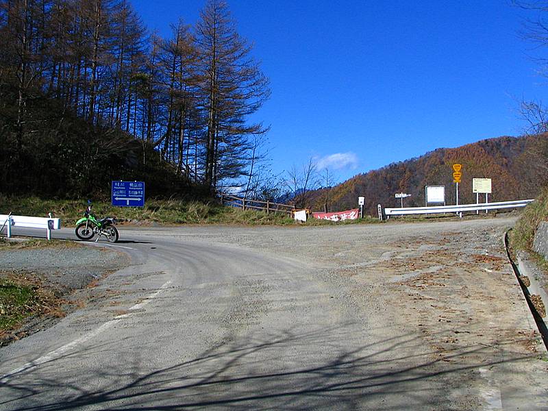 | 【5】 それなりに知られている林道の終点。ここは峠になっており、右からも左からも山梨百名山への登山道が上ります。 | ||