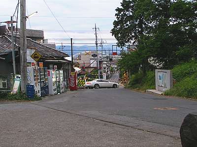 | 酒折3丁目の石割踏み切り。 左へ曲がると県道6号で右へ曲がると国道411号。 |