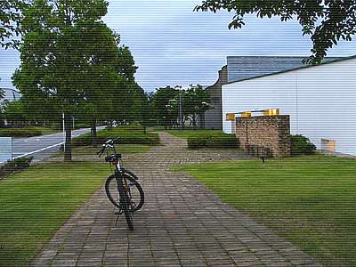 | 適当に走ってきたら何処かに出た。 辺りには近代的な洒落た建物が建ち並ぶが.....何処だ? |