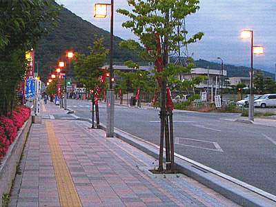 石和温泉駅へ通じる道を進んで..... |