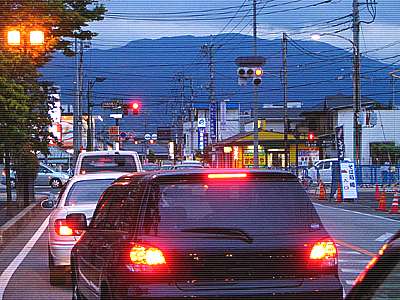 和戸町?向町? 適当に走ってきたので場所は分からないがそんなところだろう。 右手となる南側の遠くには甲府バイパス沿いのドンキホーテが見えている。 |