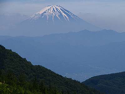 南東方向には塩山市街や綺麗な富士山の景色が広がった。 | |