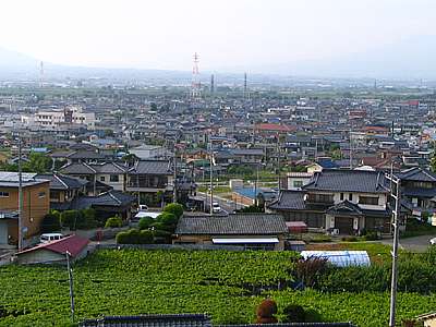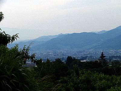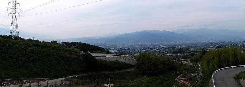| 西側には山梨市方向。 肉眼ではもっと綺麗だったのだが、写真だと霞で上手く写らないのが残念だ。 |