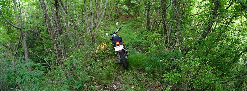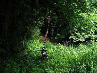 一歩間違えると10mくらい下の沢まで落ちそうだ。 こういった道は守備範囲外であり、君主危うきに近寄らず、ということで引き返すことにした。 |
