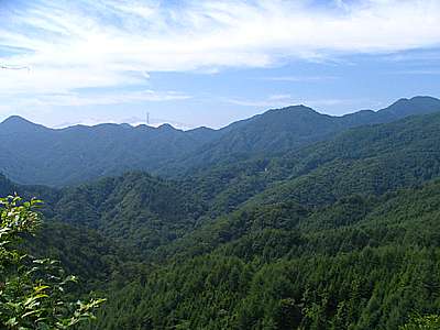 午後4時08分 観音峠大野山林道を北進。 前方に見える山は山梨百名山にもなっている瑞垣山だ。 |