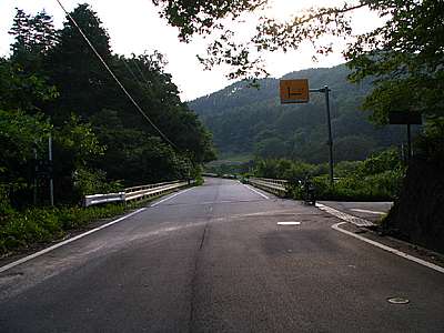 | 午後5時50分 須玉町と高根町との境界で、ここからは高根町へと入っていく。 景色が良いといいのだが、同地点からは木々が邪魔して殆ど景色は見渡せない。 |