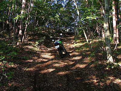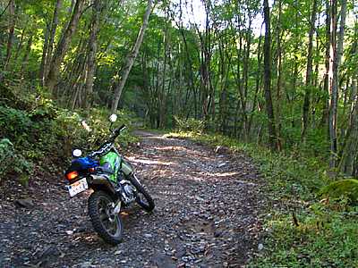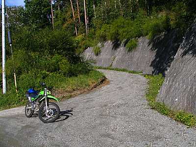 | 午後3時15分 枝道へ入ってみた。 途中からはかなりの急登で、軟弱な路面にタイヤは何度か泥を巻き上げた。 |