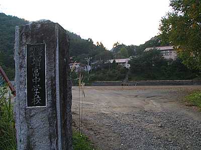 午後4時48分 神戸峠の近くに建つ旧増富中学校。 林道仲間のカズさんによると、このレトロチックな雰囲気が好感され幾つかのドラマでも使われているそうだ。 |