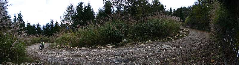 15時20分 ジャリジャリ.....ジャリジャリ。 ススキ道が現れるといよいよ南部町側の剣抜大洞線も終わりに近づいてくる。 |