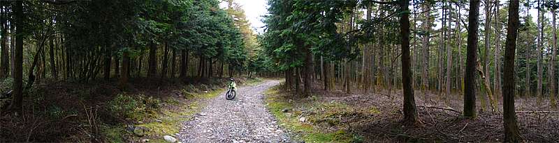 | 15時35分 篠井山線との分岐点。 左へ曲がると篠井山線で剣抜大洞線は右へと進んで行く。 ちなみに篠井山線は短いピストン林道で、数100mも進むと道が途切れて行き止まる。 |