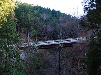 午後2時45分 大口沢支流橋。 この橋は平成15年3月に竣工したそうだ。 道はここで大きく折り返して北の甲州市方向へと向かっていく。 |