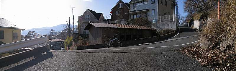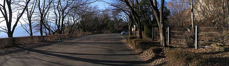 | 朝から気持ちの良い青空となった2008年1月17日。 久しぶりに山宮町の「武田の杜」へと行ってみることにした。 甲府市中心部から武田の杜へ行くには、大きく分けて和田町側と山宮町側から上る方法がある。一般的には和田町側から上る人が多いと思うが、今回は自転車なので、より交通量の少ない山宮町側から上ることにした。 午後2時34分 山宮町は甲府駅から直線距離で北西へ約4キロの場所に位置し、周囲には田園風景の広がる静かな住宅地だ。 山宮町側からは山宮団地から続く片山林道から上っていく方法もあるが、今回は千代田霊園入り口から白山峠へと上っていく。