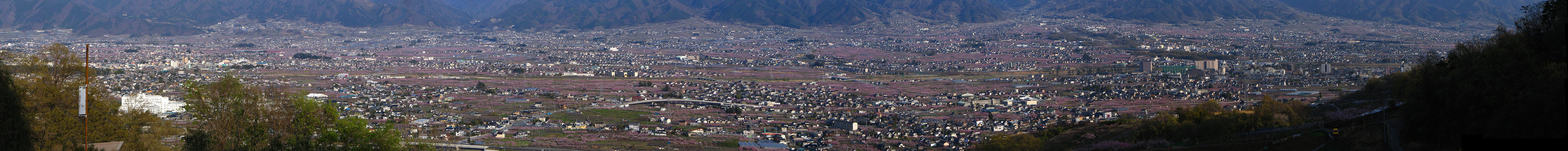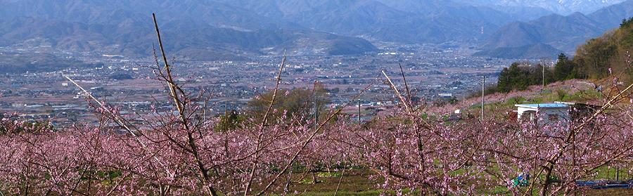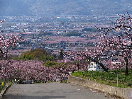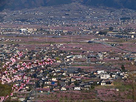 | 登山口からはそのまま車道を上り、最後は春日居町の鎮目へと抜けて戻ることにした(写真は途中の展望台から撮影)。 開花状況としては既に満開。 桃の花が見られるのもそう長くはなさそうだ。 再び出かけてみたいところだが、この先1週間パッとしない天候が続きそうなのが残念だ。