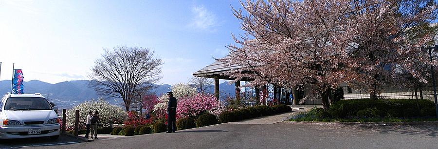 | お花見台の標高は600m前後といったところだろうか。 満開となっている市街地より250mくらい高いので、上るにつれツボミの木々が目立ってくる。 |
