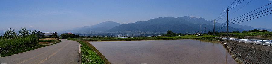 | 午後12時07分 県道616号の双葉町団子新居地区付近。 左手に甲斐駒ヶ岳や鳳凰三山、右手に金ヶ岳や茅ヶ岳を見ながら韮崎市方面へと進む。