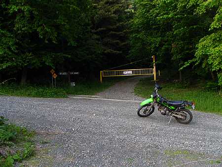 午後17時08分 が、なんと千本桜公園への道にはゲートが新設されていた。 しかも閉鎖...... 最後に千本桜公園へ行ったのは2005年だったと思うが、どうやらゲートはその後に新設されてしまったようだ。 |