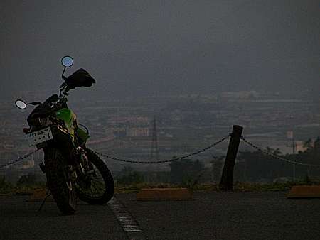 午後17時15分 仕方がないので茅ヶ岳林道を下ることにした。 ちなみに茅ヶ岳林道は明野村が管理しており、下っていくと茅ヶ岳広域農道へと出られる便利な林道だ。 |