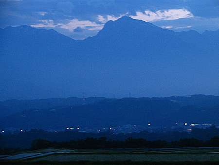 | 午後4時54分 山の裏側へ出ると目の前に八ヶ岳。 その手前側は大泉村のようだ。 |